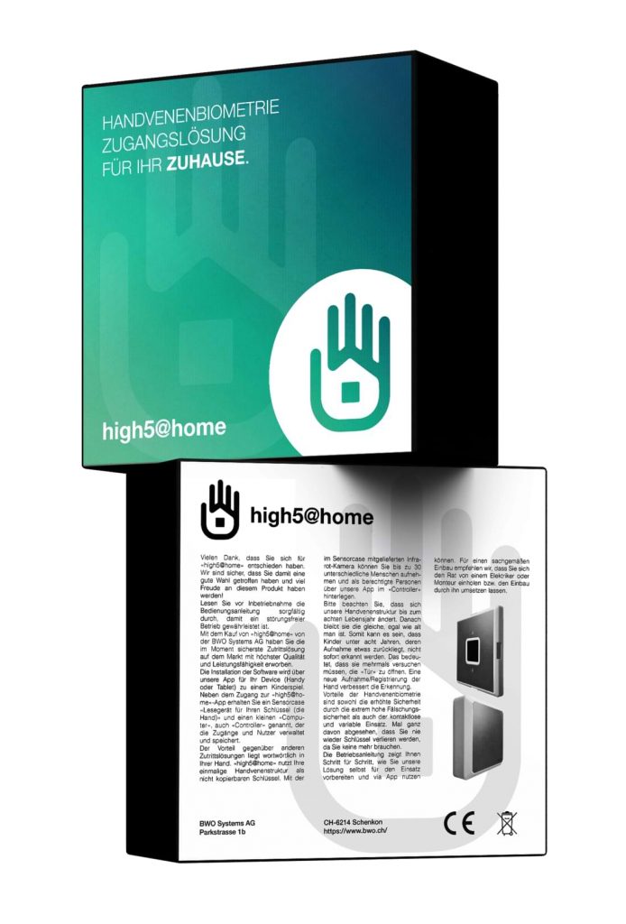 I developed graphic designs and illustrations for the BWO-UltraSecure “high5@home” hand vein scanner project. This sensor recognizes vein patterns to grant home access, giving you control over authorized users. The project is available in German and English version.